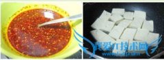 详细操作1.豆腐切成丁、牛肉切末、豆瓣酱、盐、酒、干红辣椒弄碎、青蒜、姜末、花椒粉、水淀粉、酱油、少许糖。2.锅内加少许菜油,大火加热,油热后依次加入豆瓣酱、...