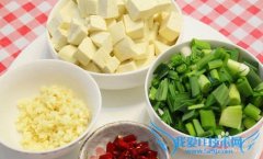 详细操作将豆腐,大蒜,辣椒及生姜洗净,把豆腐切成小丁,大蒜和辣椒切小段,生姜切碎,备用将锅洗净,烧热,倒入适量调和油,待油七分热,把红辣椒及生姜放入爆香,...