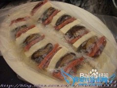 详细操作?把火腿,酱牛肉,和焖好的冬菇夹上豆腐一起蒸.不过珊珊用微波炉高火叮了5分钟.摆好碟头以后浇上蚝油芡(其实就是用水煮蚝油,加点生粉勾个芡)一碟美味的麒麟豆...