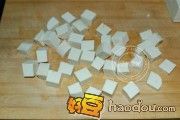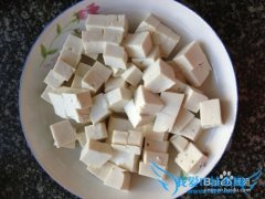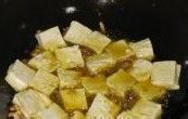 详细操作1将豆腐用清水冲洗干净,切成1.5CM左右见方的块.2放入干淀粉中摇匀,抖去余粉备用.3锅内放油烧热,放入豆腐炸成金黄色.4捞出沥油,放入盘中.5锅中油倒出,用余油...
