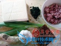 材料:豆腐200克、牛肉馅100克、青蒜15克、豆瓣酱20克、豆豉10克、姜10克、辣椒粉0.5克、花椒粉1.5克、酱油10克、盐1克(根据口味)、糖5克、湿淀粉(淀粉加少许水调...