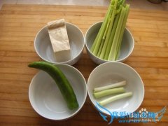 详细操作准备食材切葱花,青椒丝。豆腐切块,芹菜切段。热锅放油,炸葱花,放入豆腐。食用油稍多一些,这样可以把豆腐煎成金黄色而不粘锅。然后放入青椒丝,芹菜,盐...