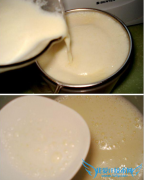 详细操作1豆跟水的比例是1:5.黄豆半斤浸泡一夜后洗净放入搅拌机中用1250ML的水分次打成浓豆浆.2用煲鱼袋或纱布滤去豆渣.把豆浆放锅中小火煮开(浓浆很易糊锅.请多翻动...