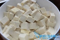详细操作水豆腐先用清水冲洗一下,然后放入适量的清水,加入少许的盐腌一下。这个步骤最好不要省略,它的目的是让豆腐一来可进进味,二来不易碎。然后切成块。放入电...