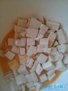 详细操作豆腐一块2将豆腐切成小块用盐水浸泡30分钟4取一个保鲜袋装入地瓜粉和淀粉混合,将豆腐块放入袋中来回晃动几下,使每块豆腐都沾上干粉,放置2—3分钟使干粉固...