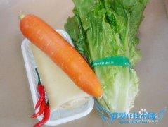详细操作准备好原材料,备用,如下图生菜洗好摘好,小辣椒切碎,胡萝卜切成丝,备用锅里烧开水把生菜煮熟,豆腐皮也煮熟再把胡萝卜丝放盐炒熟,再把辣椒放锅里炒香盛...