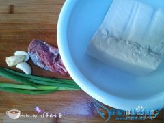 详细操作1.北豆腐片成大薄片,青蒜切成小段,青红椒切成小块,生姜,大蒜,葱白切成碎。2猪瘦肉切成片,用生抽,老抽,玉米淀粉,清水,沙拉油拌匀腌制10分钟。3平底...