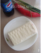 详细操作老豆腐、可乐、红椒、葱备好。老豆腐切成方块备用。葱白切成葱段,姜切成片,葱、红椒切成粒待用。煎锅内放油烧热后,把豆腐放入。用中小火煎至两段金黄色。...