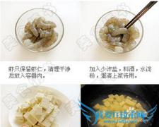 材料:豆腐,虾仁或者鲜虾,蛋清。调料:葱丝,姜片,盐,料酒,水淀粉,香油,生抽。将豆腐切成小方丁,放入开水锅中焯一下,然后捞出沥干水分。将鲜虾处理干净,只...