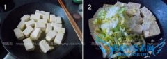 详细操作首先我们把豆腐切块用平底锅煎至双面微黄。然后把鸡蛋加生粉及温水打散。接着把葱剁成细蓉。再是煎黄的豆腐加食盐、生抽调味,加一碗清水大火烧开转小火慢慢...