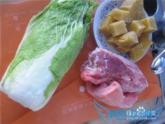 详细操作食材:大白菜、冻豆腐、猪肉。冻豆腐放入水里解冻。冻豆腐化开之后拿凉水洗一下,挤掉水分。肉洗净,切片。白菜洗净切片。锅烧热放入油烧热,放入葱姜炸香。...
