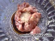 详细操作先把豆腐切成长4厘米、厚1厘米、宽0.5厘米的条,放开水中淖一下,捞出沥干水分。葱姜蒜切成末。五花肉切成细条。将生抽、料酒、醋、糖、淀粉、葱姜蒜放入碗...