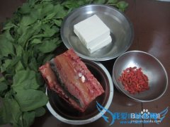 详细操作准备好食材。取下枸杞叶。枸杞菜泡洗干净。枸杞子浸泡5分钟。豆腐、鱼骨洗干净切小块。鱼骨加少许盐进行腌制15分钟。下油锅稍煎一下鱼骨。煎至微金黄色加进...