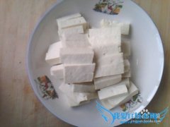 详细操作首先把豆腐切成长约4厘米,宽约3厘米,宽约1厘米厚的片。将葱、姜切成小米粒。把切好的豆腐放到容器中,放入葱、姜、盐、料酒,小心用手弄匀。腌制5分钟。这...