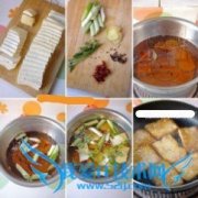 详细操作1老豆腐切片,厚薄大约1.5厘米2葱切段,姜切片,干辣椒切段,蒜拍撒(忘了拍照)3大约半锅清水,放入姜片,花椒粒,酱油煮开4煮开的料汁放凉,然后加入葱段...
