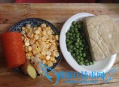 详细操作北豆腐、胡萝卜、玉米粒、豌豆、生姜、大蒜、萝卜切丁、豆腐切条,蒜切片、姜切末豆腐焯水,捞出备用爆香生姜、大蒜倒入:胡萝卜、玉米、豌豆,翻炒倒入盐巴...