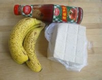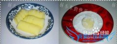 详细操作准备好材料。把豆腐从中间切开,用模具压出造型。用勺背把豆腐的中间舀出一个小洞。香蕉切成厚一点的片状。水开后,大火蒸5分钟。把番茄酱倒入碗中。加入白...
