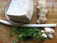 详细操作准备食材。将豆腐切成5厘米左右,厚约1厘米的大正方块。锅中放比平时烧菜时多一点的油,烧热后放入豆腐。煎至两面焦黄盛出备用。葱姜蒜切末,香菜红椒同样切...