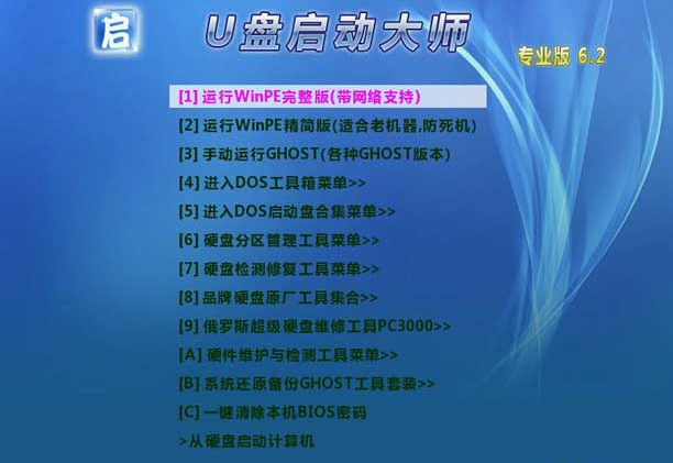 在您需要安装操作系统的电脑上插入您刚才制作的U盘,设置计算机从U盘启动(不会设置的,点此查看怎么设置)。然后重启进入U盘启动界面,选择【1】进入PE系统。