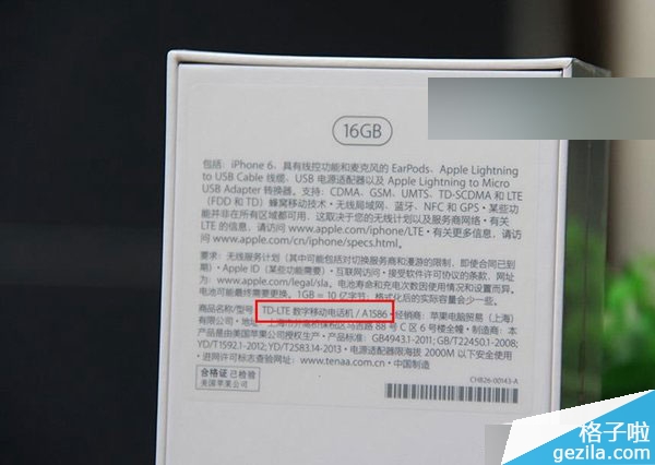对于新购买的iPhone6,一般都可以在包装盒背面的铭牌参数中,查看到iPhone6的型号。由于目前市场上iphone 6水货比较多,包装上面的型号是可以做假的,所以小编不建议用这种方法查看。如图所示: