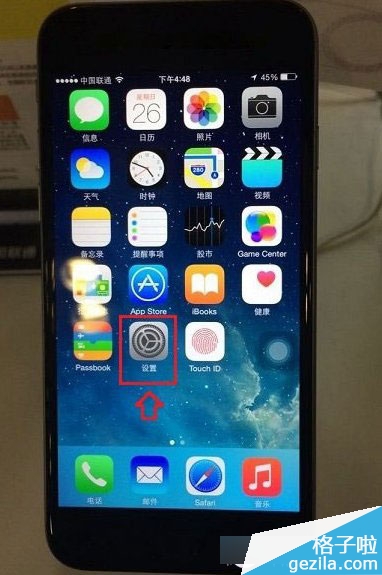 1、进入iPhone 6主界面,找到“设置”,并进入,如下图所示: