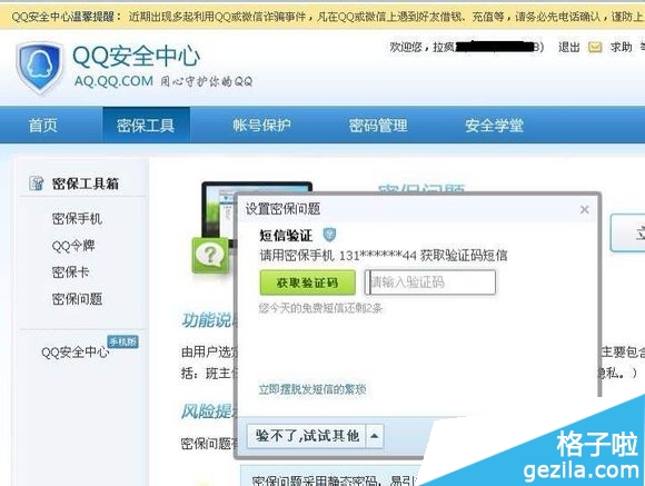 如果可以开启则提示绑定手机,手机绑定成功后即可设置二代密保!
