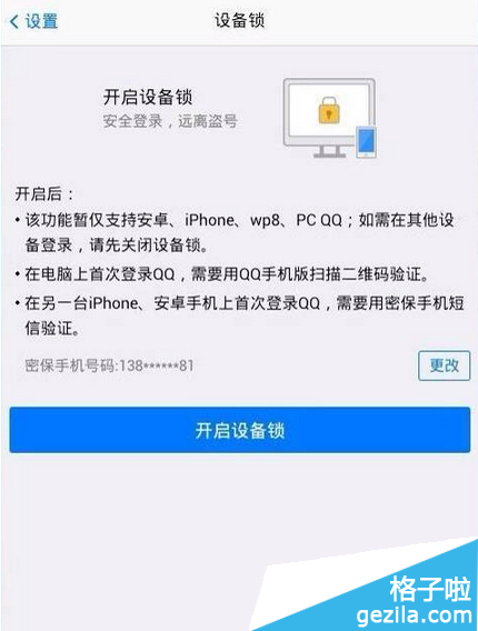 2、最后就是大家需要用到功能----设备锁,号码在已经挂出常用的情况下,就可以直接绑定密保手机了,当然我的号码是已经绑了手机的,未绑定手机状态下,是提示你输入手机号码,按提示就行操作就可以了,如果失败的话多挂几天就好了。
