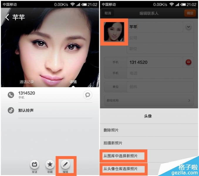 点开你需要设置的联系人,编辑-点击头像处-选择从图库或者头像仓库选择照片