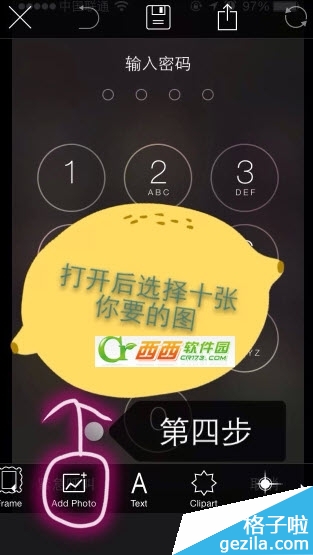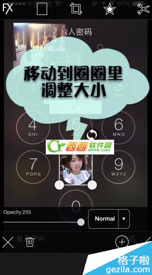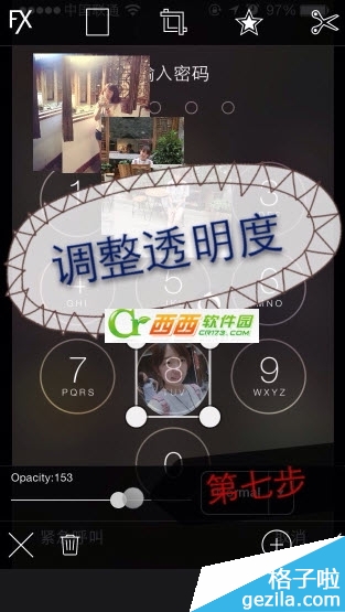 第一个编辑图片要选择你自己截的锁屏的图。然后有个Add photo。然后选十张图。然后接下来的步骤。opacity是透明度调节。左上角星星可调节形状。圆形大小自己掌握。