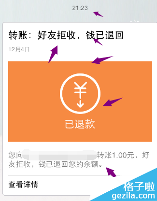 5、大家可以看到,当拒收转账以后,大号会有显示已退款的消息哦!