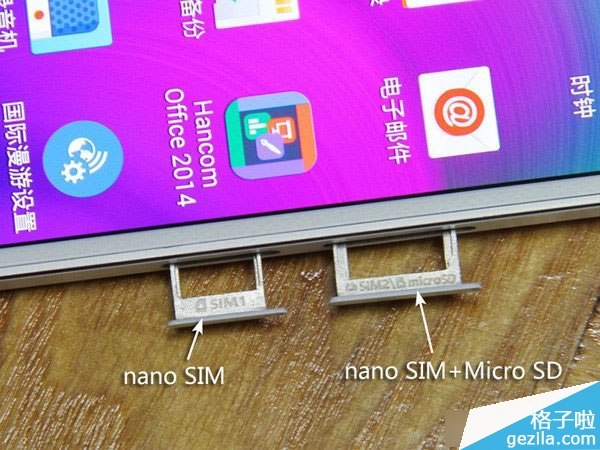 从上面的回复可以看得出来,三星A7必然采用了双卡设计,所以支持双卡双待,三星A7的卡槽放置在了机身右侧,其中一个卡槽是nano SIM与内存卡混合使用的,另一个则只是插入nano SIM卡,支持TDD-LTE/FDD-LTE/TD-SCDMA/GSM/,双卡双待单通,如下图所示: