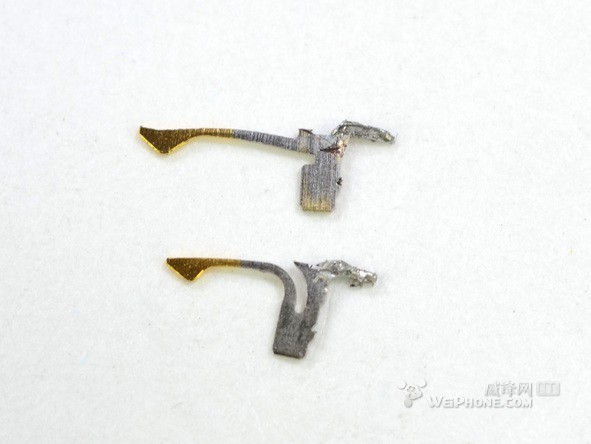九,iPhone 5内部有各种金属跟金属之间的接触,我们图中看到的这块连接器,是用来连接前置摄像头的金属框架和后置摄像头的金属框架。或许金属框架本身是某种天线。一时间还还难说清。