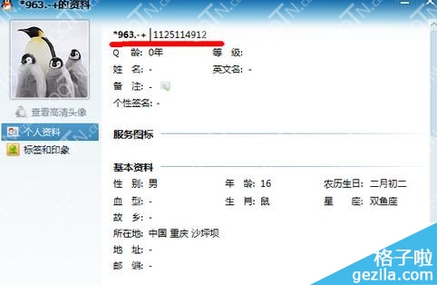 3、这样可以更加详细的看到它的Q龄以及QQ号码,打开桌面上的QQ,登录该账号,密码都是通用的“*963.-+”
