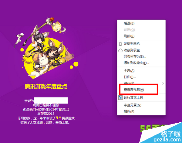 进入http://igame.qq.com/wx-app/acts/a20150204year/index.php 网址右击查看源代码
