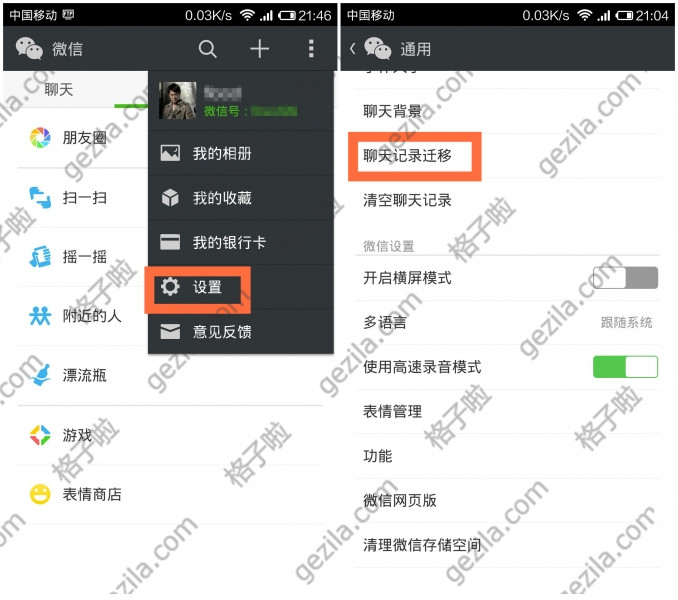 换了新手机, 发现登陆微信之后,没有以前的聊天记录怎么办? 方法很简单,右上角菜单-设置-通用-聊天记录迁移,微信提供聊天记录的上传和下载,这样就可以在多台手机间同步聊天记录了。