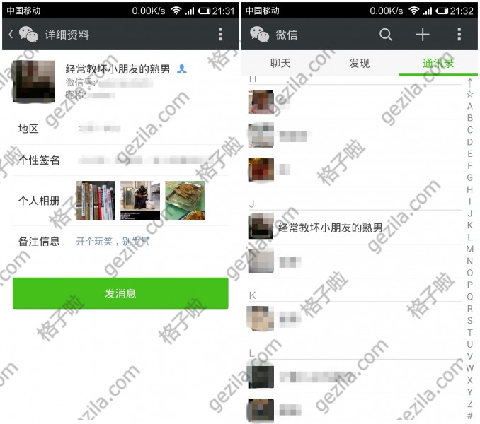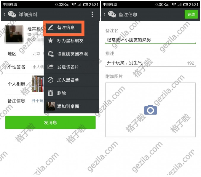 经常遇到爱改微信头像和昵称的二货怎么办?要找好友又不记得对方的微信账号怎么办? 备注二货信息,不管你丫马甲怎么换,都可以轻松找到你。联系人右上角菜单-备注信息。
