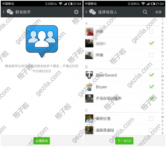 通过微信群发信息,可以省去你很多短信的费用,逢年过节尤为适用!设置-通用-功能-群发助手。