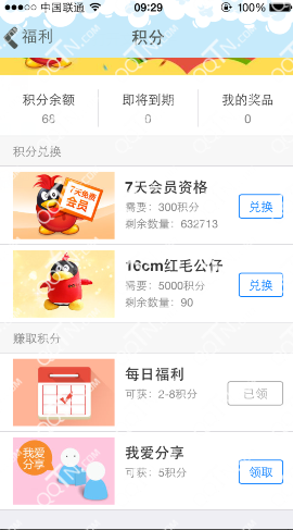 4、在积分里我们可以看到使用300积分即可兑换7天会员,5000积分可兑换红毛公仔,每日数量有限,先到先得哦!