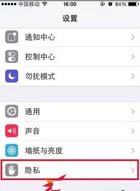 1、找到并打开iPhone6/plus手机【设置】,选择【隐私】 。