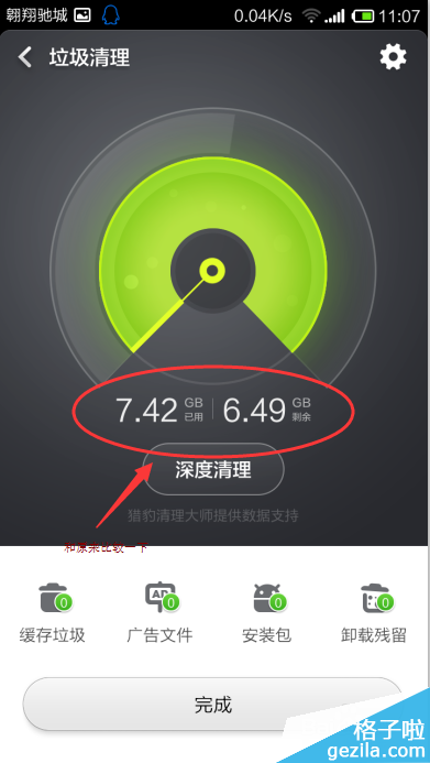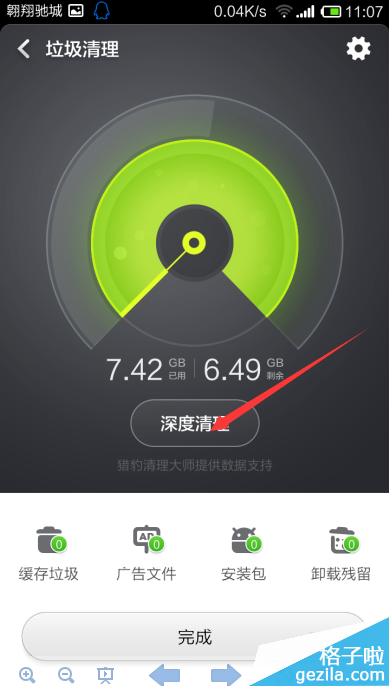 7、如果觉得可以了就点下《完成》,如果觉得空间释放不够大点下《深度清理》
