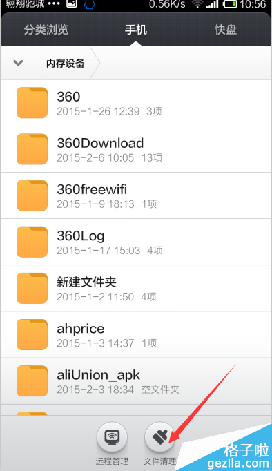 2、打开文件管理后,点下面有个是刷子图标《文件清理》