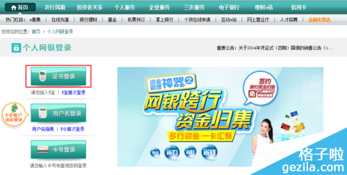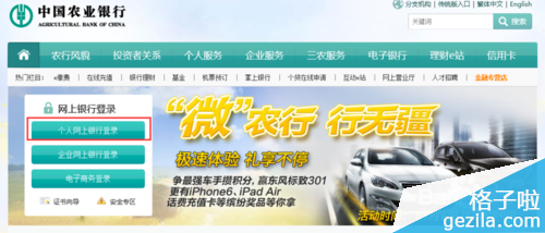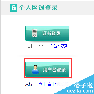 1、插入K宝,自动进入农行官网。选择“个人网上银行登录”。