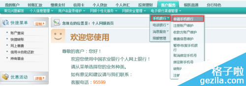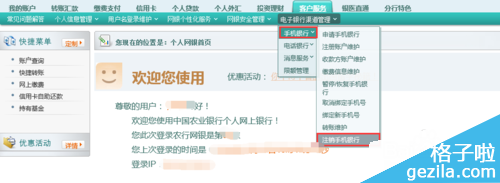 4、在“手机银行”菜单中找到“注销手机银行”。