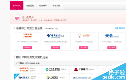 3、积分兑入:可以把各种银行、商户积分兑成集分宝使用。