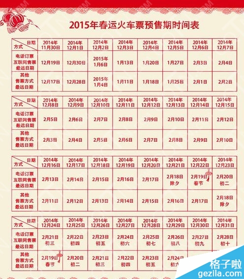 年底了最期待的就是过春节了,目前距离2015羊年春节还有两个多月的时间,今年的过年相比以往都要晚一些,正月初一是2月19日,就连年轻人爱过的情人节都在春节前了,为了让大家安心的过年,小编为大家详细的整理了2015春节放假仿牌通知以及火车票购买需要注意的事项。