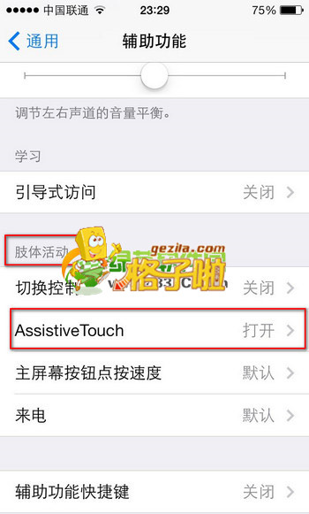 点击“设置”---“通用”----“辅助功能”--“肢体活动”,开启“AssitiveTouch”即可。