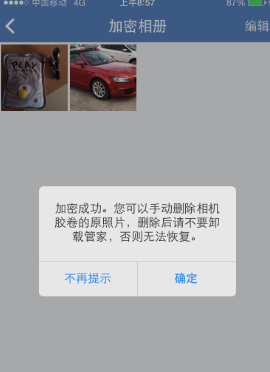 8、这时你的手机管家加密相册中就会多了这几张你想隐藏的图片,然后将手机相册中的原图删除,就可以让照片只属于你一个人而不会被偷看到啦。