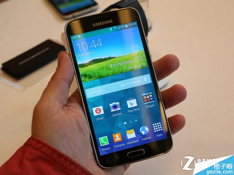 出人意料,GALAXY S5并没有采用外界猜测的2K屏幕,而是搭载了5.1英寸1080P Super AMOLED材质屏幕,2.5GHz骁龙800四核处理器,2GB内存,16/32GB机身存储,最大可扩展至128GB存储空间,2800毫安时电池,支持IP67级别防尘防水。 从参数上看,仅仅是屏幕比S4大了一些,其他参数与S4持平。另外,IP67级别防水防尘的加入也是三星GALAXY手机的首次。网络制式上,它支持全LTE网络制式及802.11ac WiFi标准。