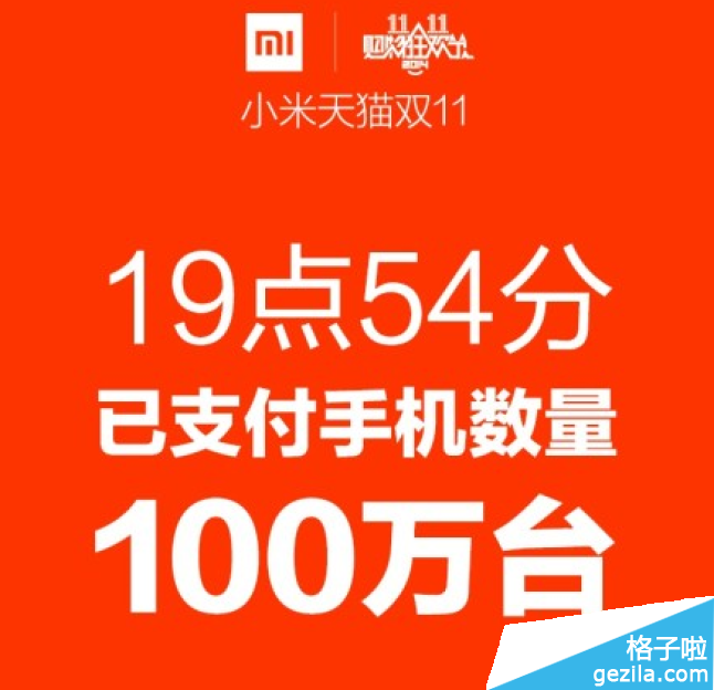 20:21 截止晚上8点10分,小米天猫店支付破14亿,已支付手机超过100万台。这个节奏!
