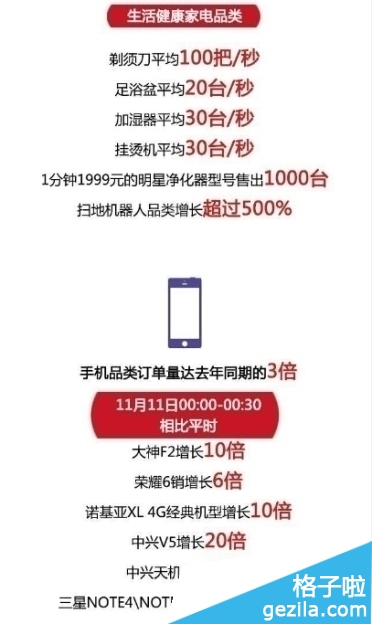 小米的数据:11日00时开始,小米天猫旗舰店正式开场。截止到00时4分48秒,总支付金额超过1亿元,同时,小米天猫官方旗舰店在手机品类单店以及全品类单店TOP20商铺中均排名第一。截止到00时16分40秒,总支付金额已经突破两亿元,截止到00时31分48秒时,支付金额突破三亿元。